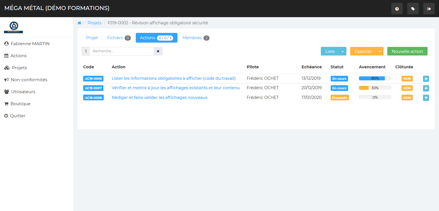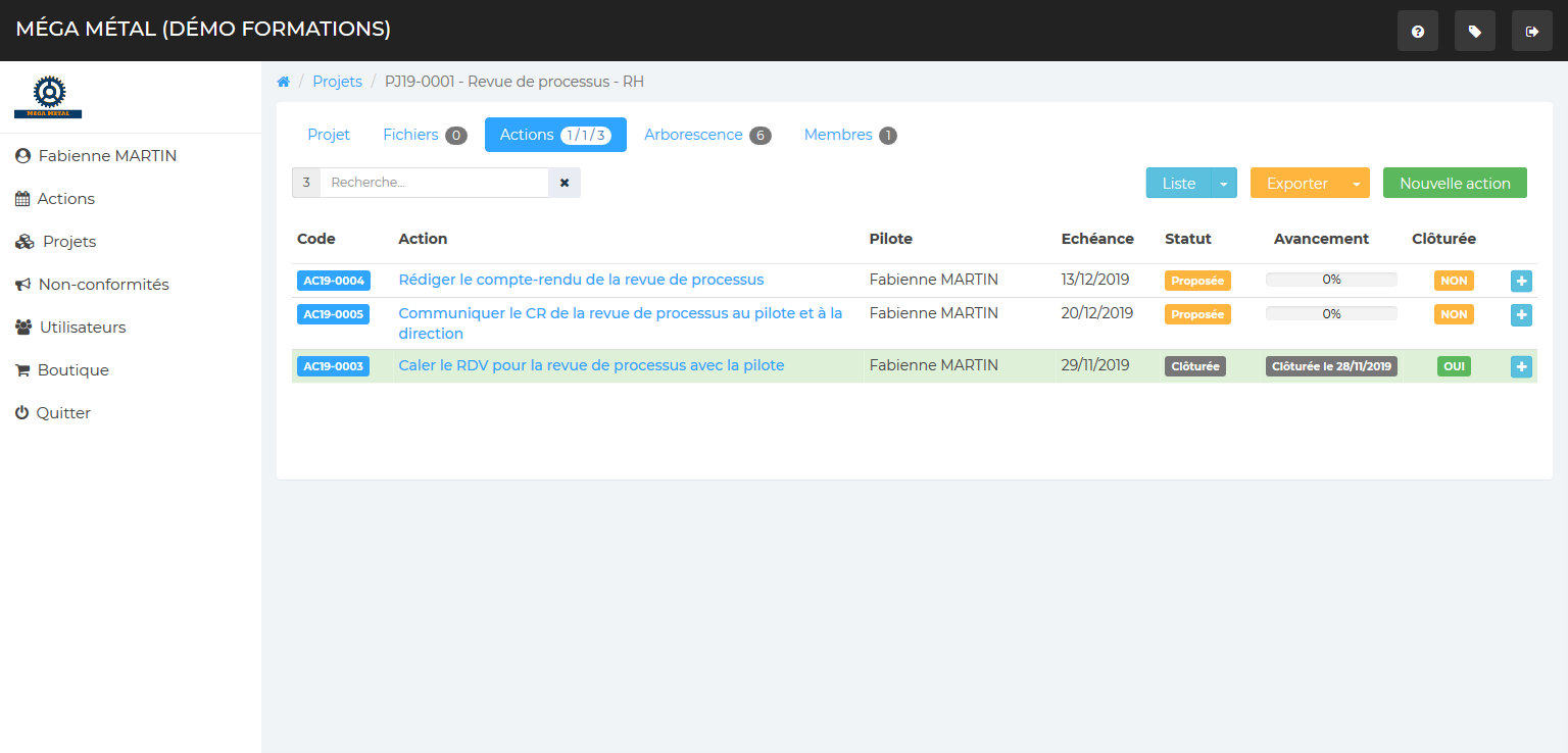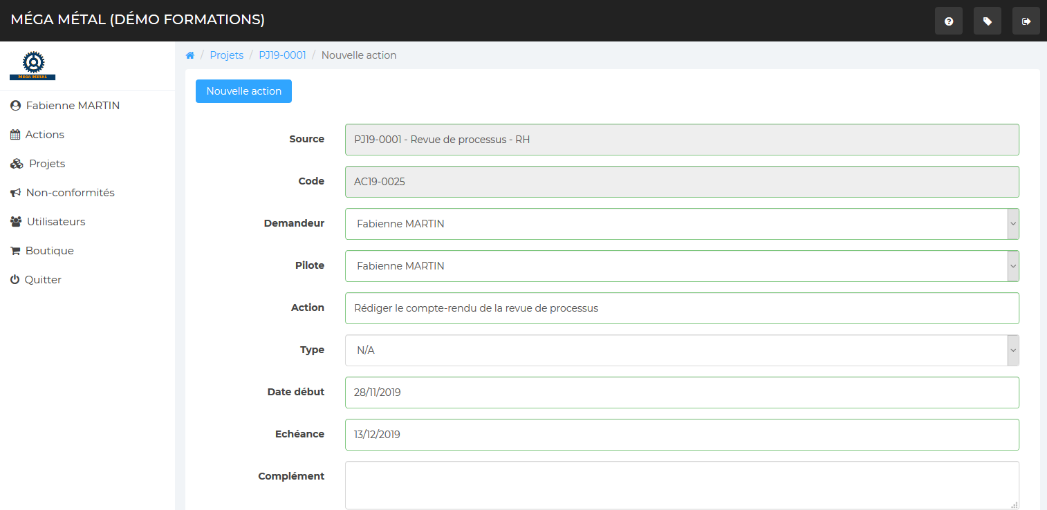 Comme chaque action est systématiquement associée à une "source" (ex: non-conformité ou un projet).