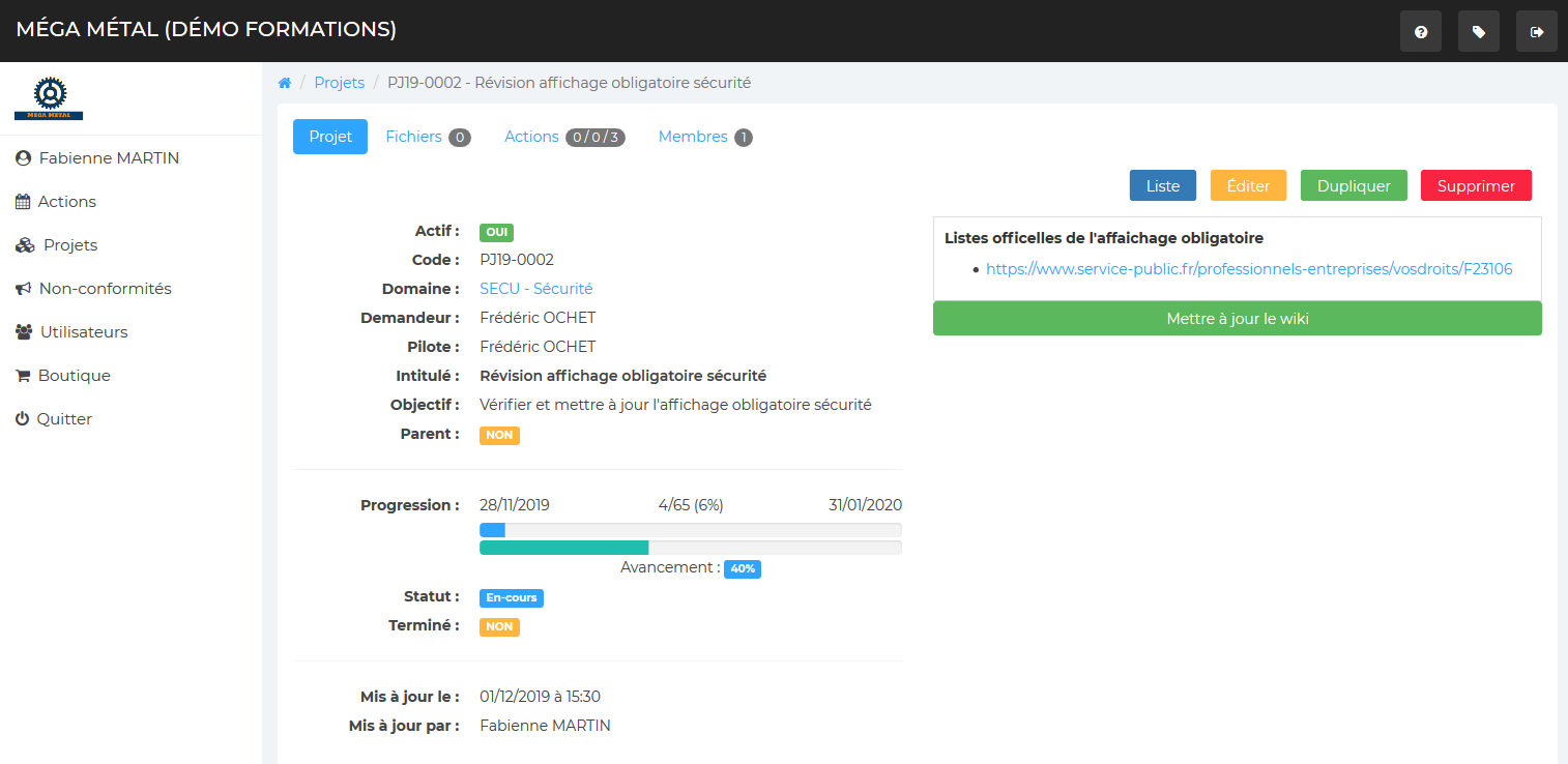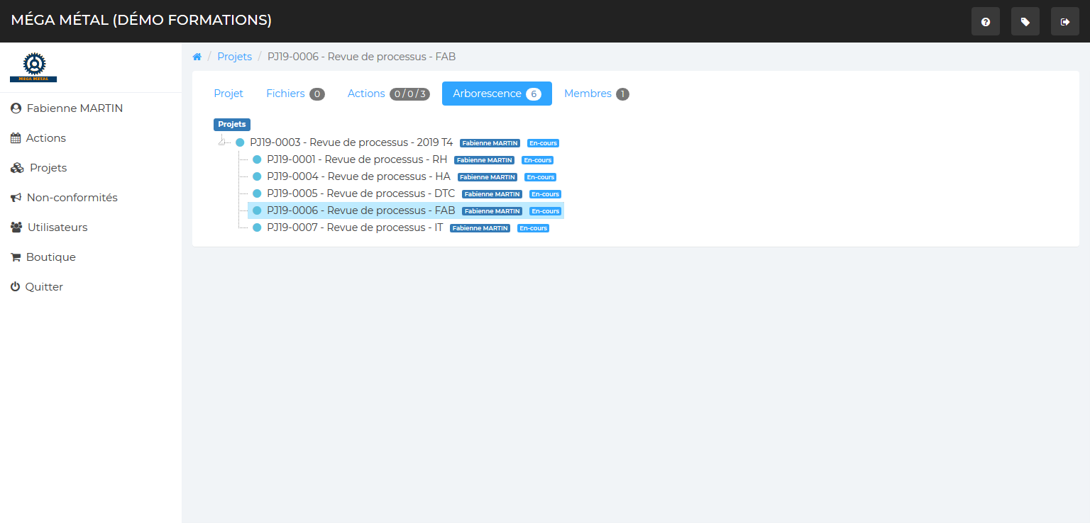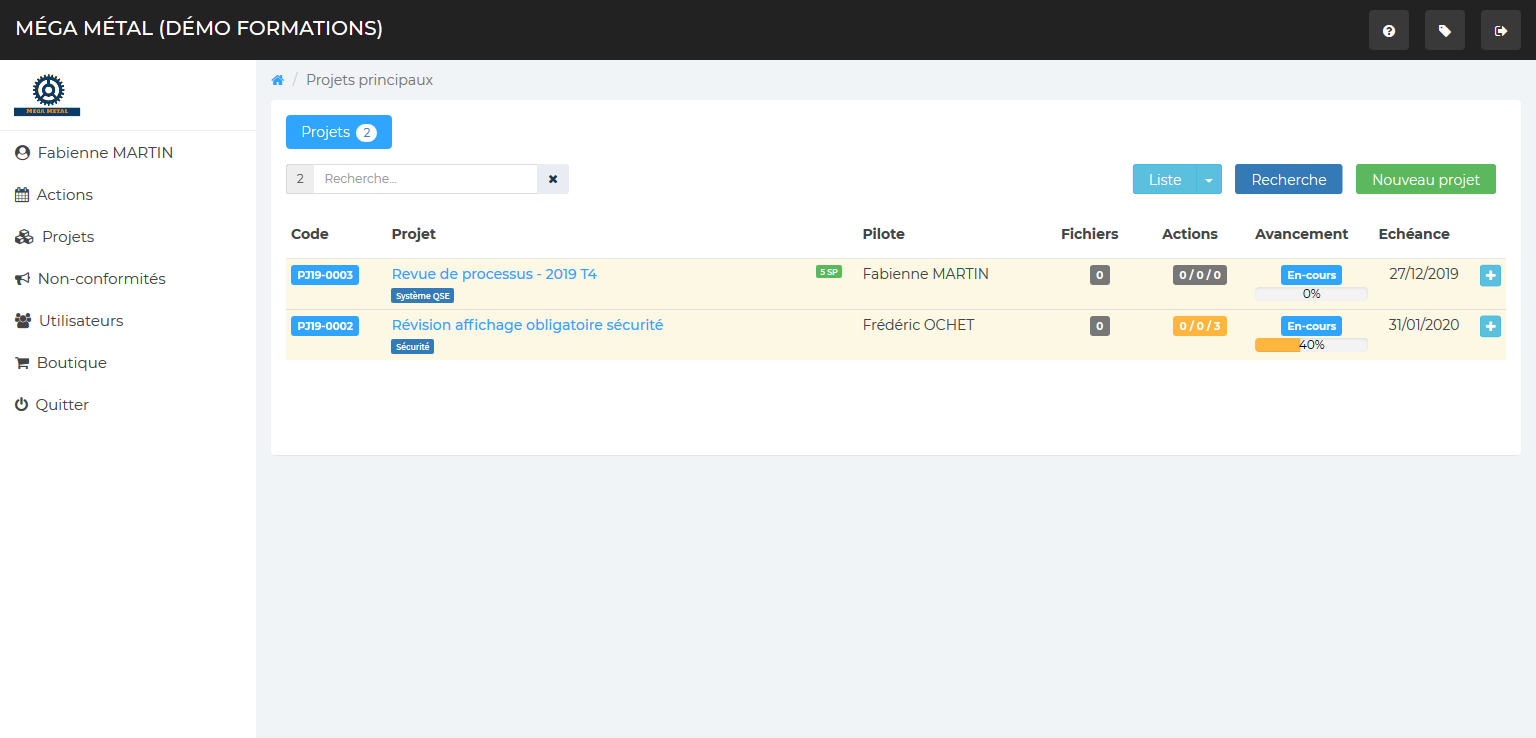 (ex: Qualité, Sécurité, Système QSE), à un demandeur, à un pilote et biensûr avec un mot clé à retrouver