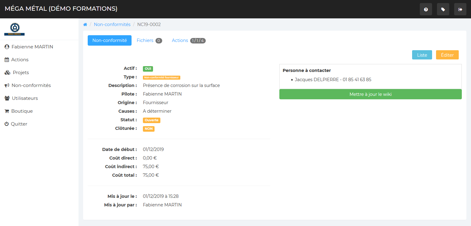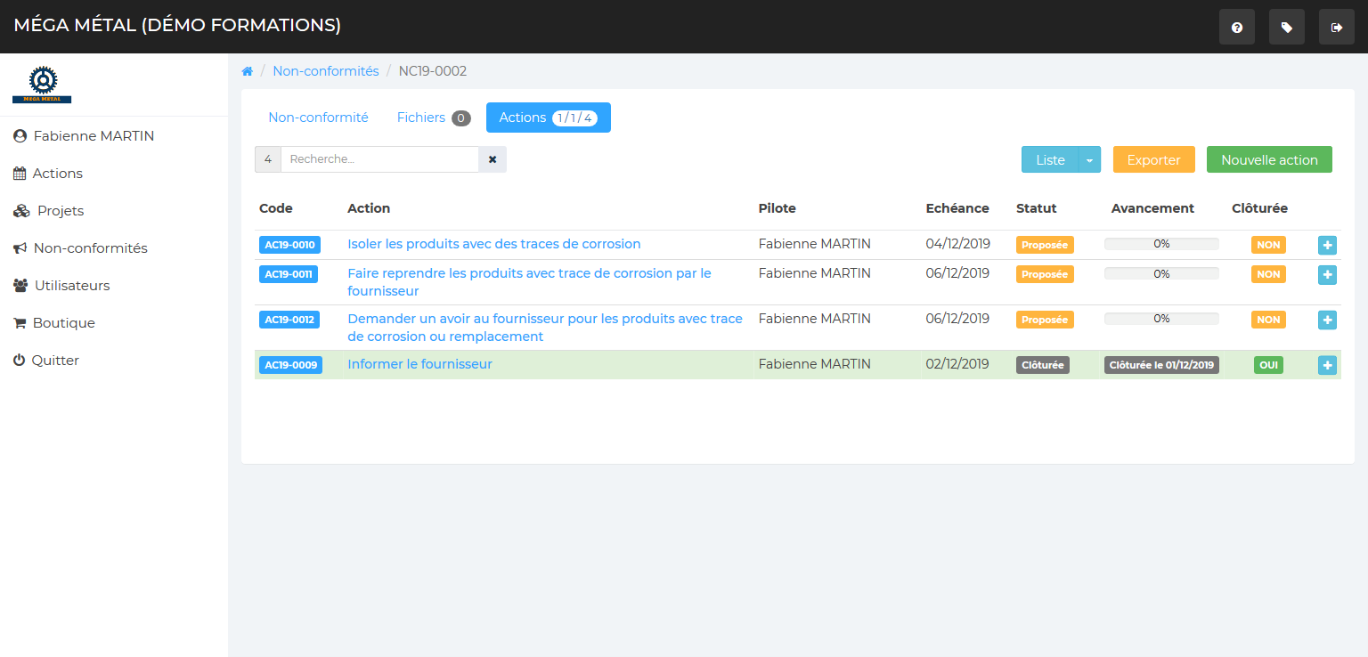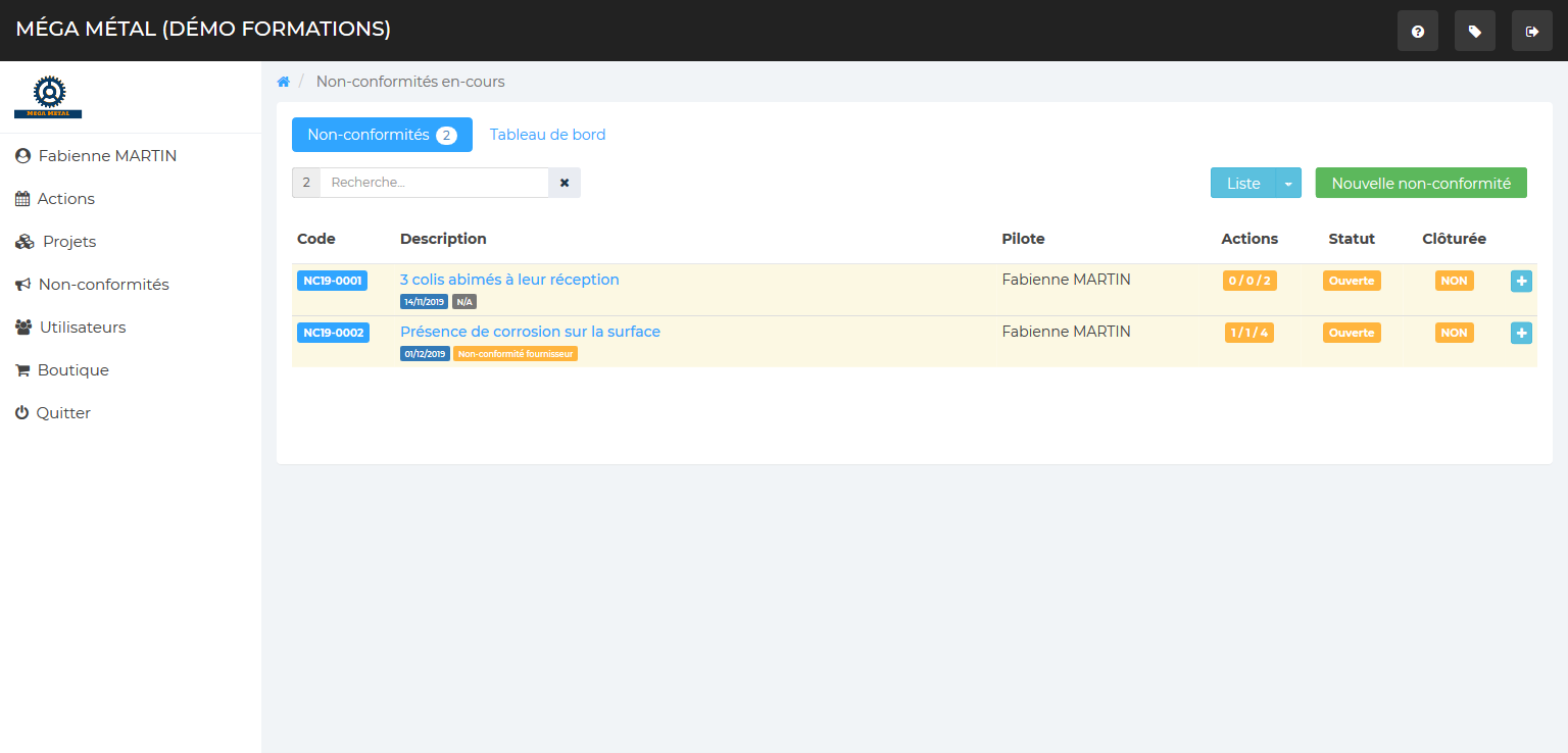 Le module "Non-conformités" vous permet d'enregistrer et de suivre l'ensemble des non-conformités